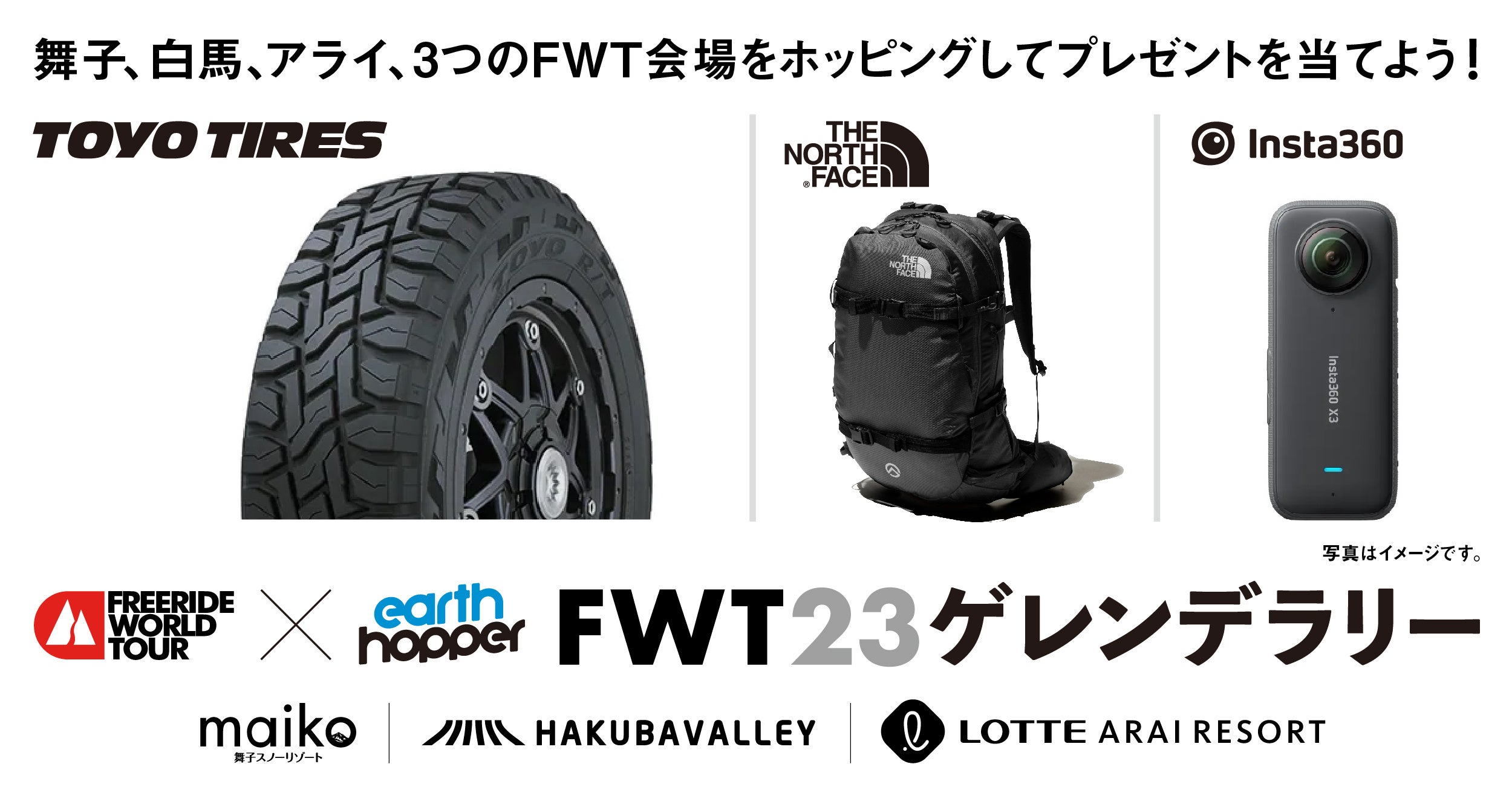 - キャンペーン名称:FWT × アースホッパー「FWT23ゲレンデラリー」