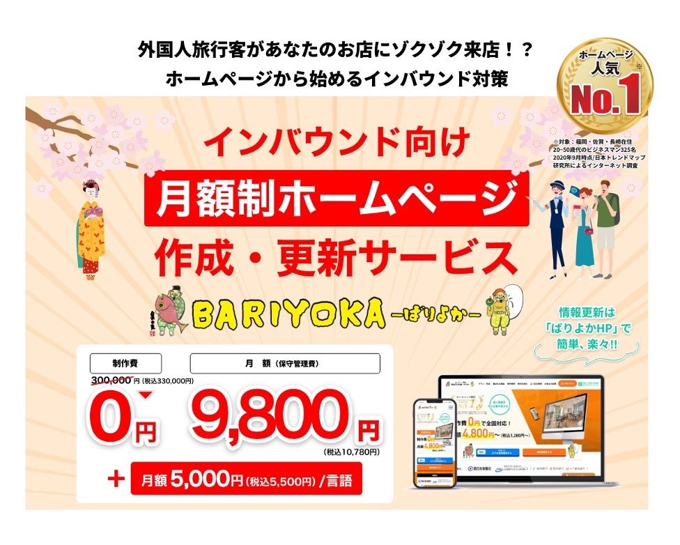 定額制ホームページ制作・運用サービス「ばりよか」、外国語対応プランを開始