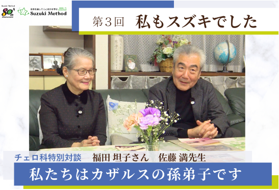 カザルスとその弟子であるチェロ科創始者の佐藤良雄について、チェロ科草創期に学んだ佐藤満氏と福田坦子氏が語り合う「カザルスの孫弟子対談」を開催し、その様子を卒業生インタビュー「私もスズキでした」第3回として、このたび公開しました。