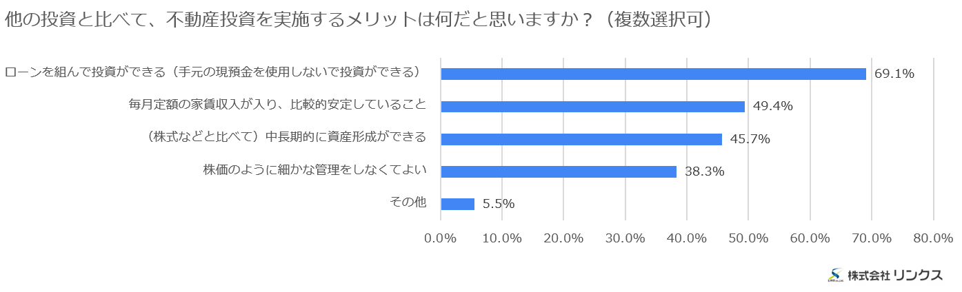 調査の結果「ローン(融資)を組んで投資ができること」が最多で69.1%の結果となりました。