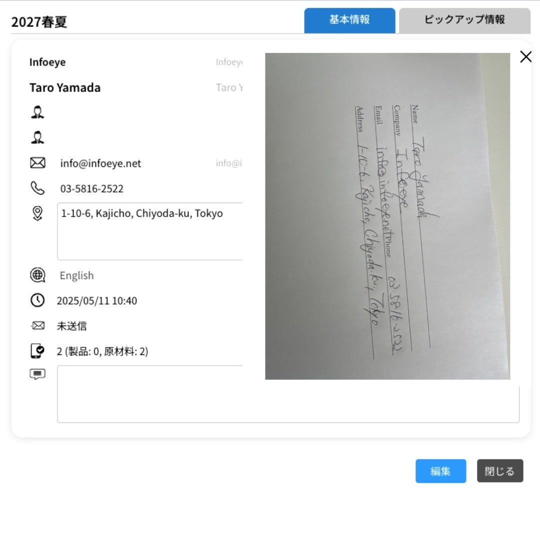 展示会・商談支援機能を大幅アップデート―名刺読み取り・手書き受付台帳取込・簡単ログイン・生地ハンガーシール出力まで―