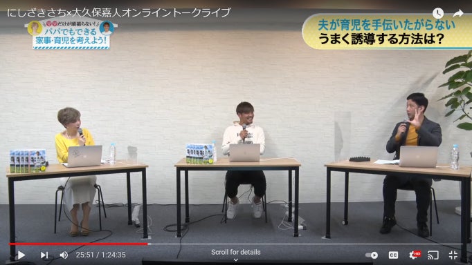 元プロサッカー選手 大久保嘉人さん、男性学が専門の社会学者 田中俊之先生、お片づけ習慣化コンサルタント 西﨑彩智による「パパでもできる家事・育児」トークライブ開催しました!