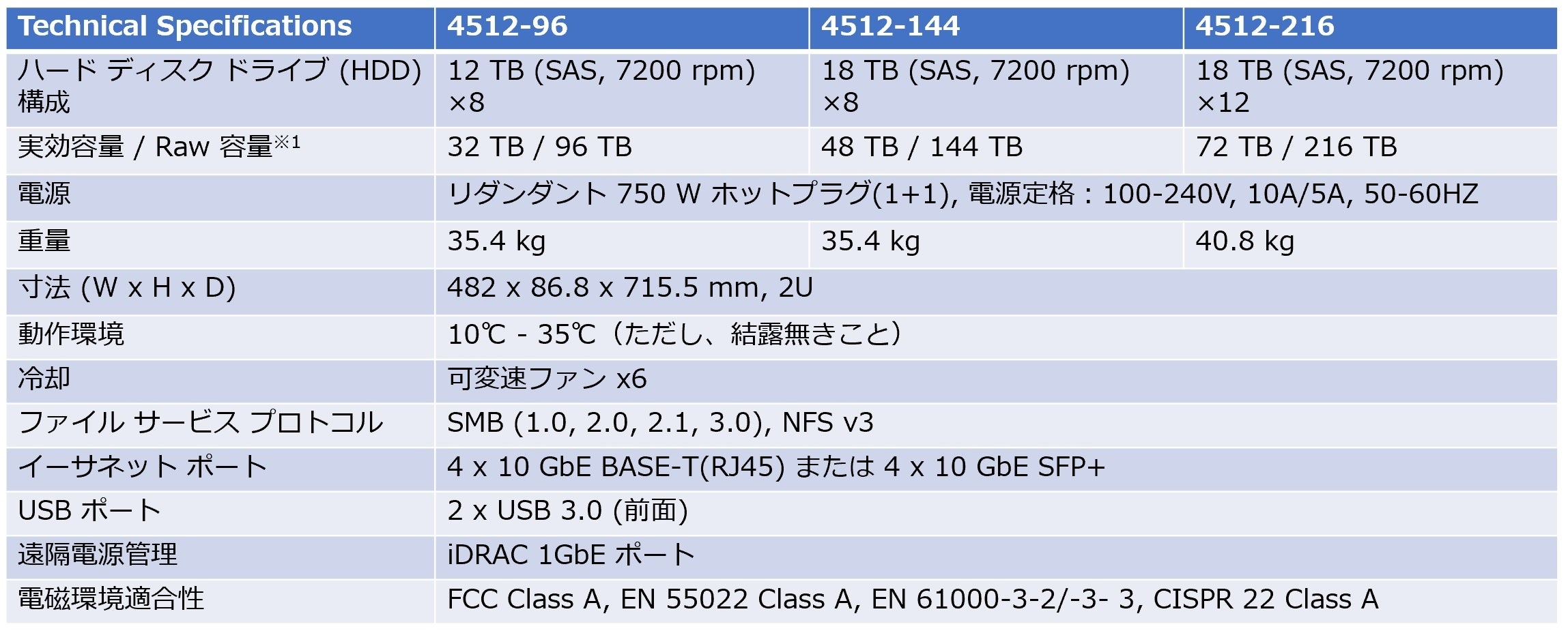 「Arcserve OneXafe 4500シリーズ」には、4512-96(32テラバイト モデル)、4512-144(48テラバイト モデル)、4512-216(72テラバイト モデル)の3種類があります。また、イーサネット ポートには 10 GBase-T(RJ45)と SFP+ の二種類があり、購入時に選択できます。