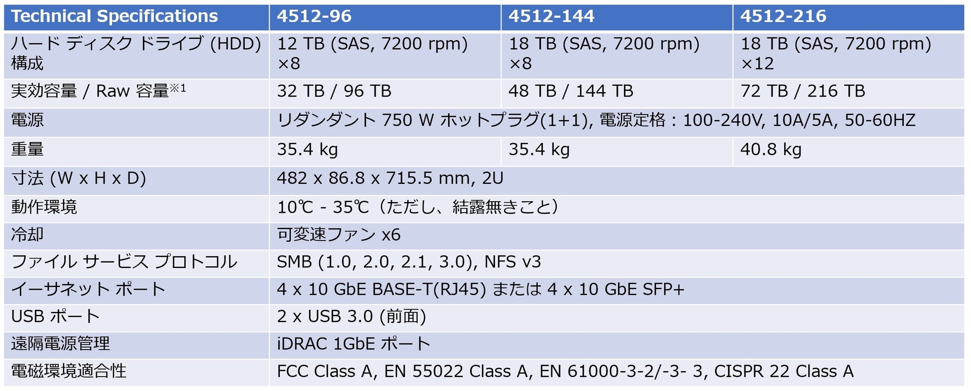 ※1 Raw 容量は HDD の合計容量です。OneXafe は3つの HDDに同一ブロックを書き込むので、実効容量は Raw 容量の 1/3 になります。