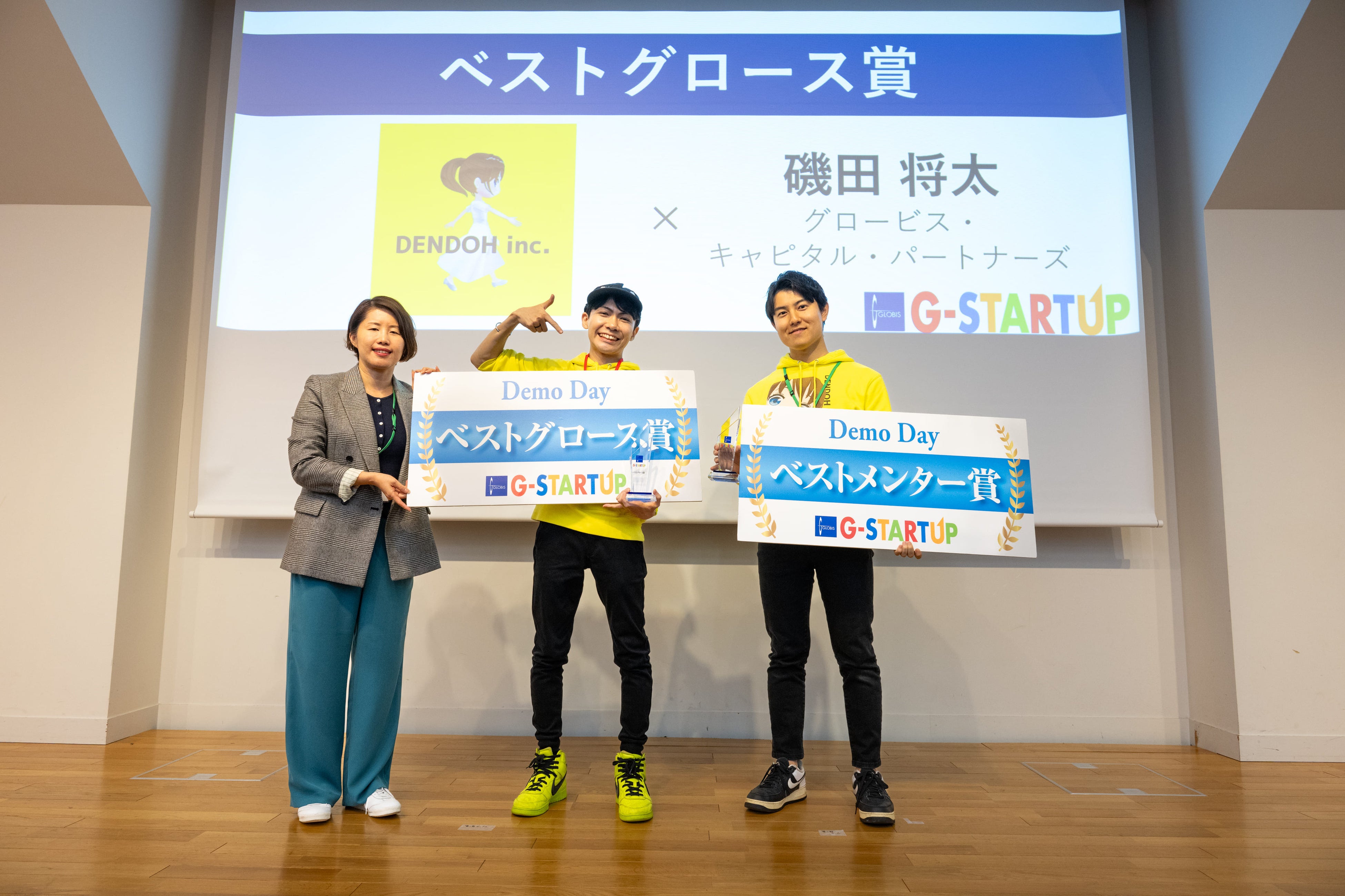11月2日(木)「G-STARTUP」の7th Batch Demo Day(成果発表会)にて、株式会社DENDOHの代表取締役、押田大輝がプログラム期間中に最もグロース(成長)した企業に表彰される『ベストグロース賞』を受賞しました。