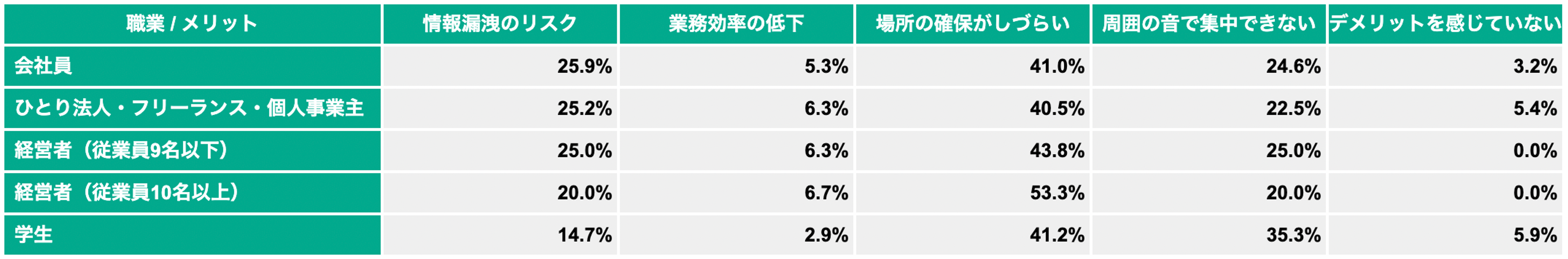 - 調査詳細②|外出時のテレワークのデメリットは?