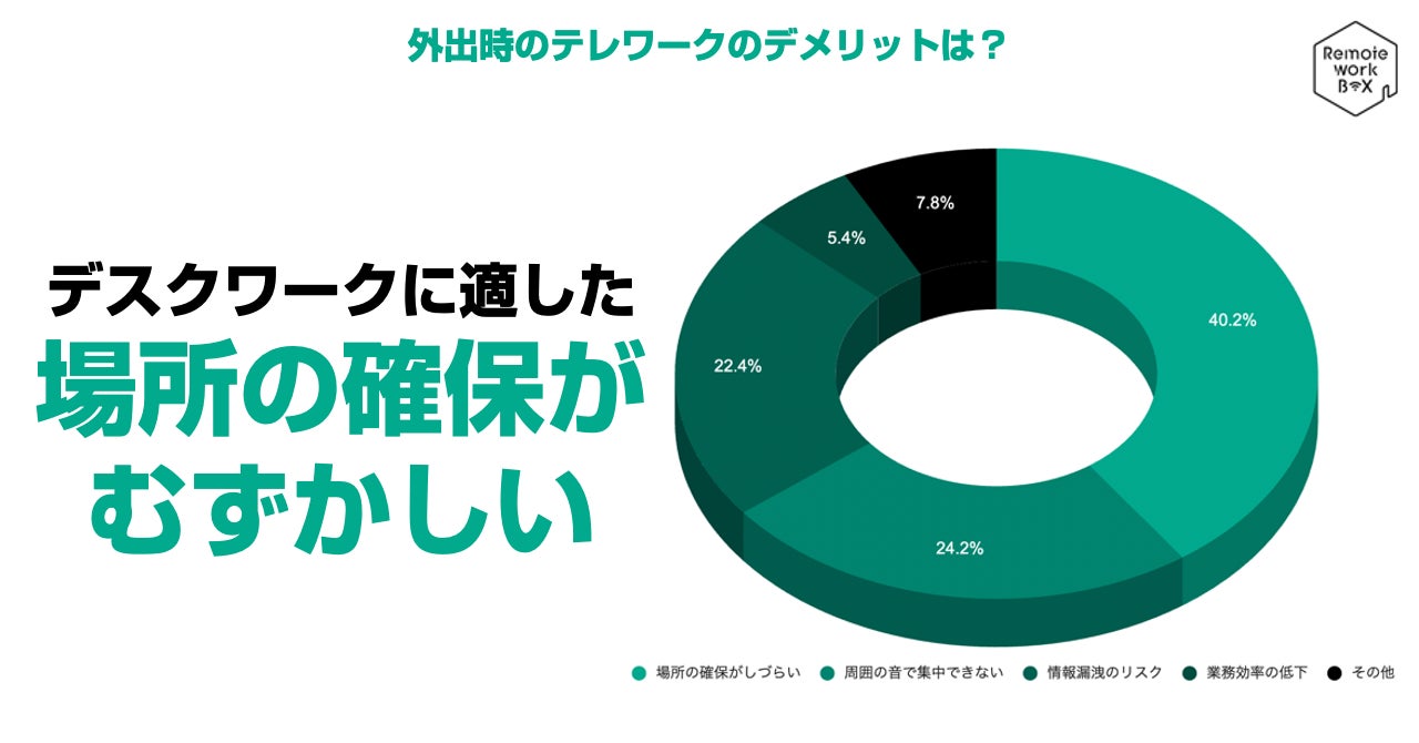 ・一方で、テレワークが一般的になってきたことから、「場所の確保」がしずらい。