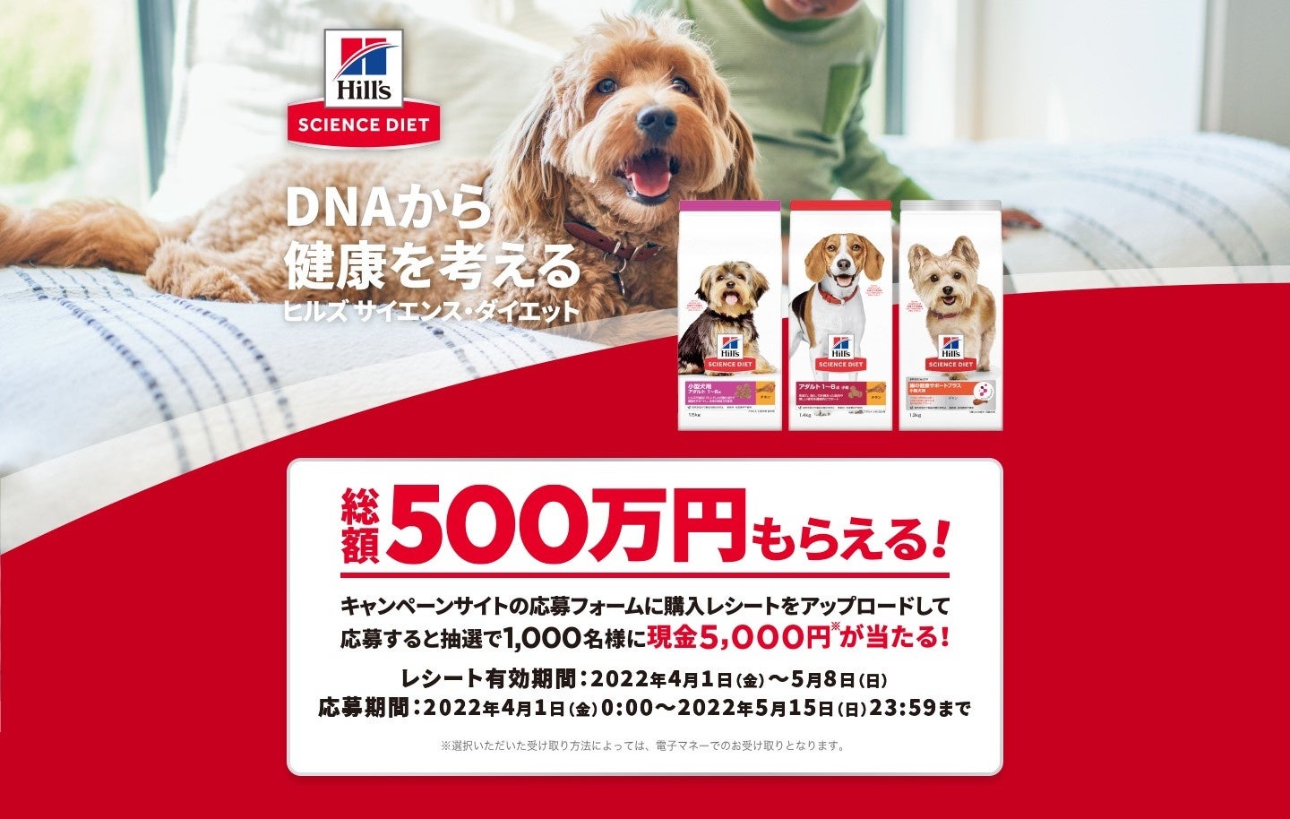 - ヒルズ サイエンス・ダイエット「総額500万円もらえる」キャッシュバックキャンペーン概要