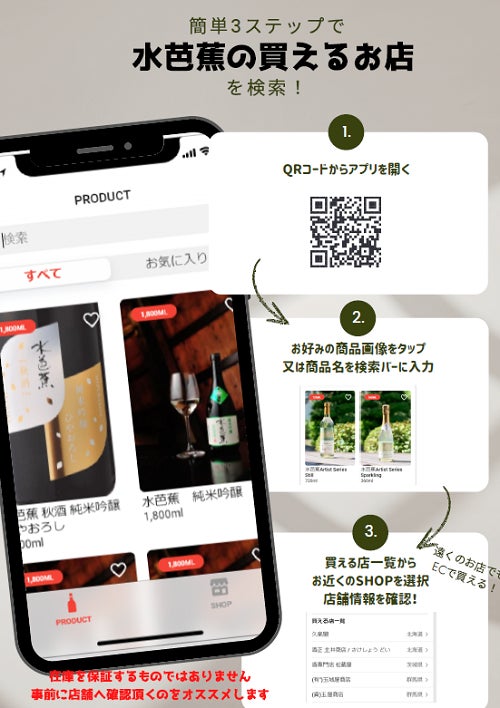 今回の発売に伴い、弊社のお酒を取扱うお店を手軽に探せる「水芭蕉買えるお店検索アプリ」を公開いたします。