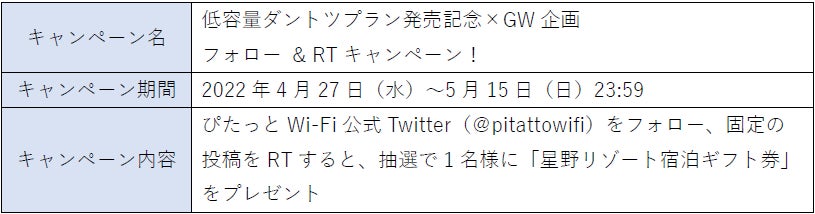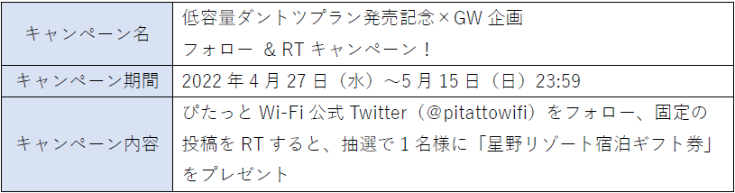 さらにGW特別企画として、「星野リゾート宿泊ギフト券」が当たるTwitterキャンペーンも開催中です。