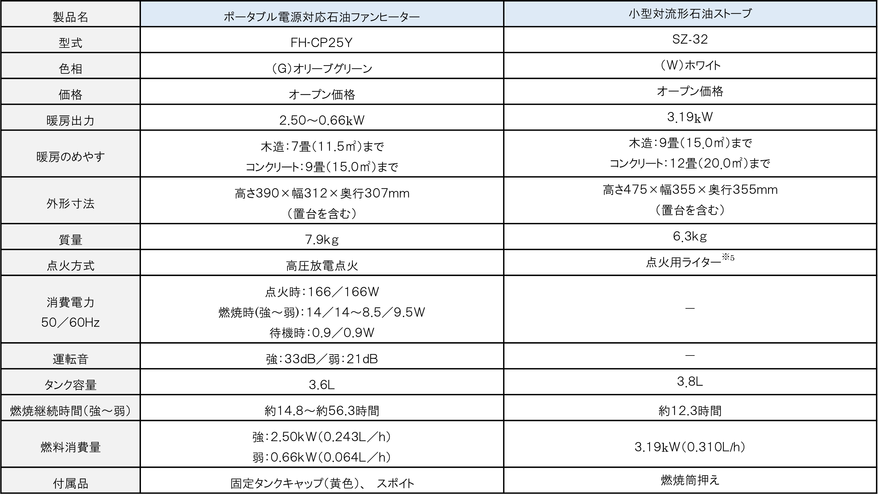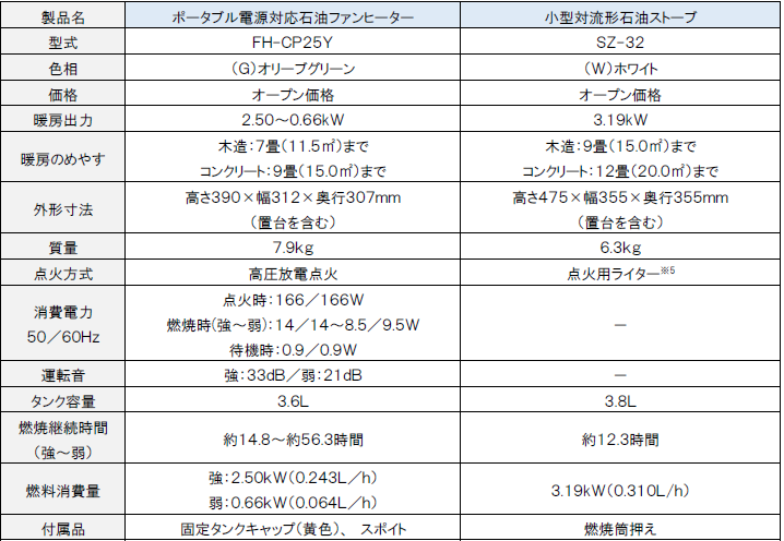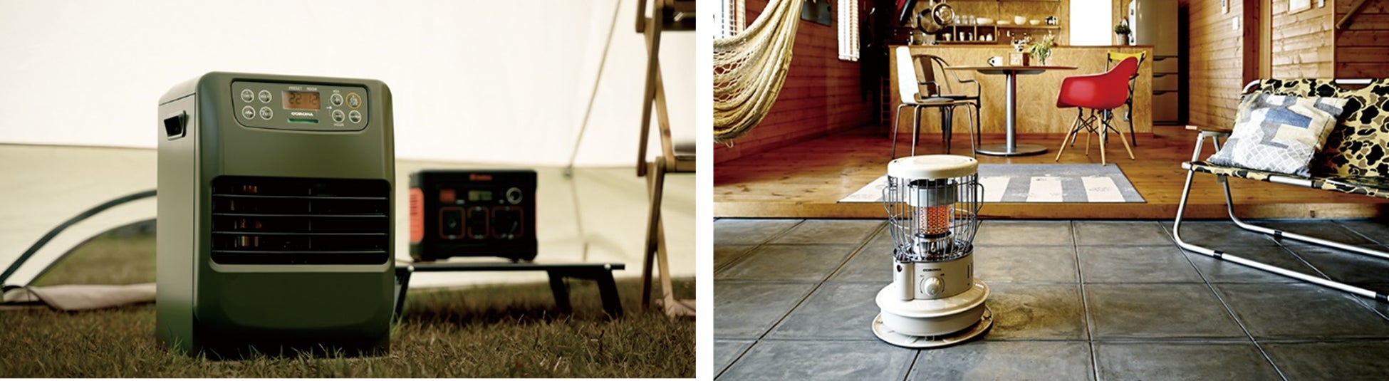 昨年公式オンラインストアで即完売したポータブル電源対応石油ファンヒーター「オリーブグリーン色」と小型対流形石油ストーブの「ホワイト色」を全国家電量販店等で発売!