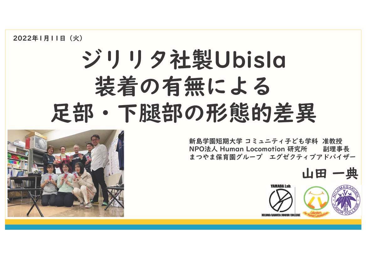 新島学園短期大学 コミュニティ子ども学科 山田 一典准教授(2022年度から東海学園大学教育学部 教授)に「Ubisla装着の有無による足部・下腿部の形態的差異」という研究レポートを作成していただきました。