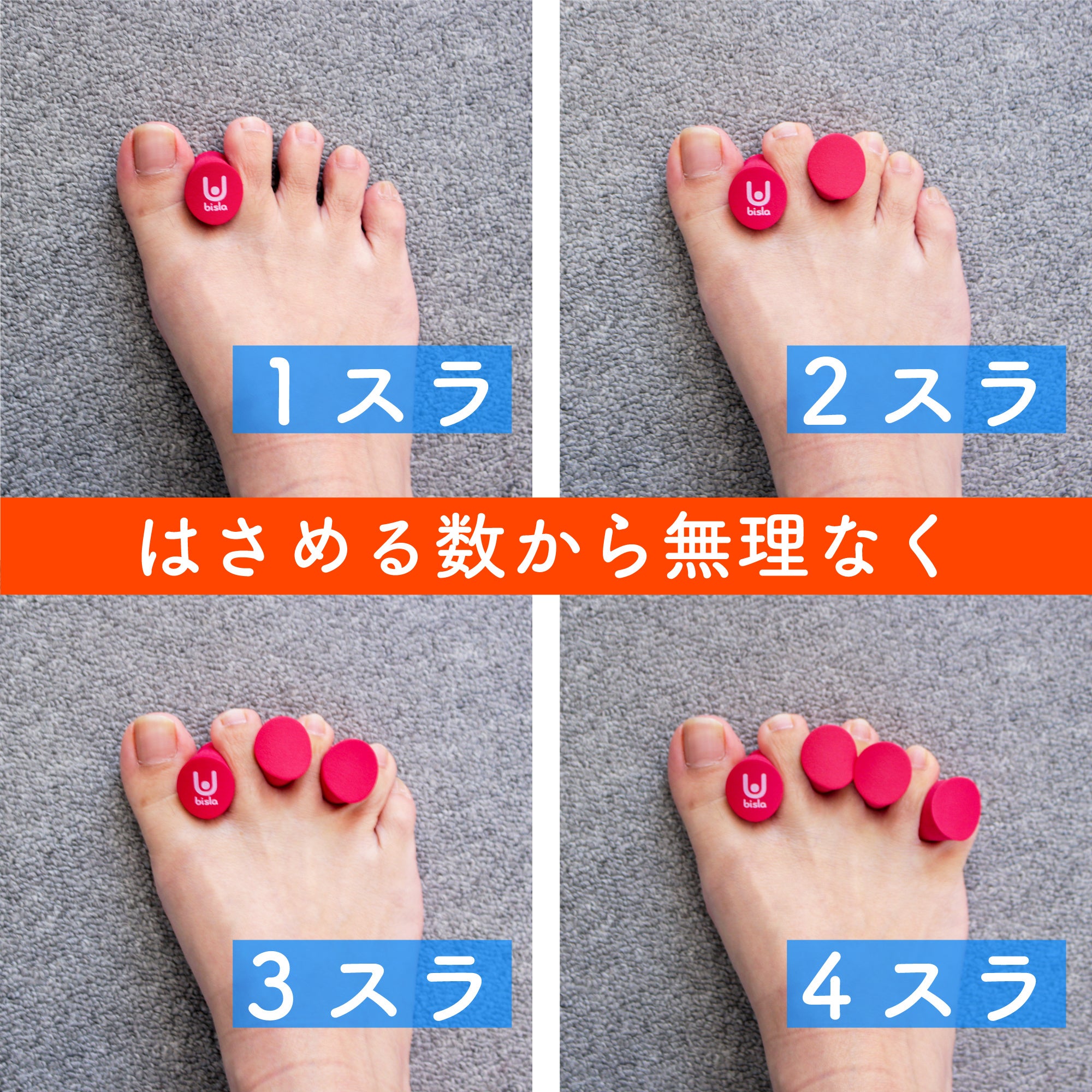 足の状態に合わせて挟みたい指の間にひとつから挟むことができるので、「足の症状が悪くてすべての指につけるのは難しい…」という方でも、気軽に使えます。また、靴をはきながらでも使用することができます。