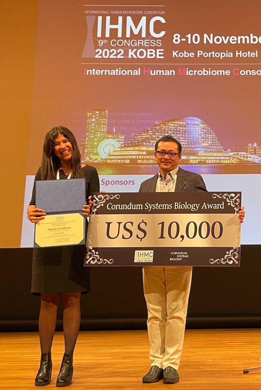 2022年11月8から10日に神戸市で開催された国際ヒトマイクロバイオームコンソーシアム国際会議(IHMC KOBE 2022 https://ihmc2022.jp/index.html)で、マイクロバイオーム領域で社会実装につながる研究課題に取り組む研究者に対して贈られるCorundum Systems Biology Award(CSBアワード)の発表が行われました。