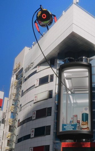 本デモ映像では、湾曲したディスプレイを搭載したKEIO MIRARERU VISION 渋谷メガウォールの特性を最大限に活かし、迫力のある映像体験を生み出します。またSNSでは、現実を拡張するCGI演出によって、クレーンがビジョンの枠を超え渋谷の街に飛び出してくる、現実と非現実が混ざり合う瞬間を創出いたします。