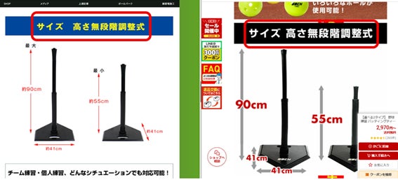 ⑵ 弊社商品「ゴム製バッティングティースタンド|FBT-322」(左)及び対象商品(右)