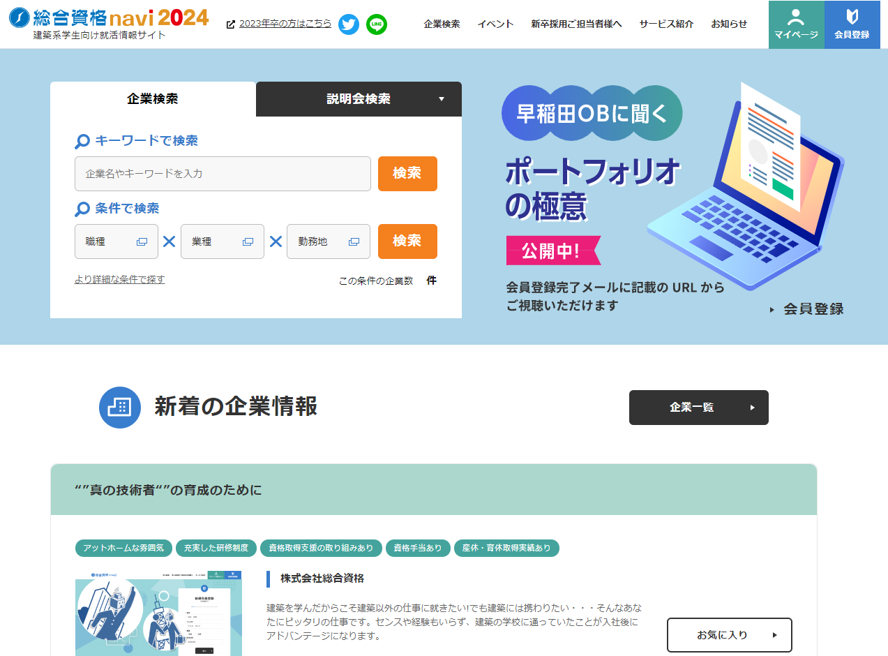 【総合資格学院】2024年卒 建築系・土木系学生向け就職情報サイト公開『総合資格navi 2024』で就活スタート!
