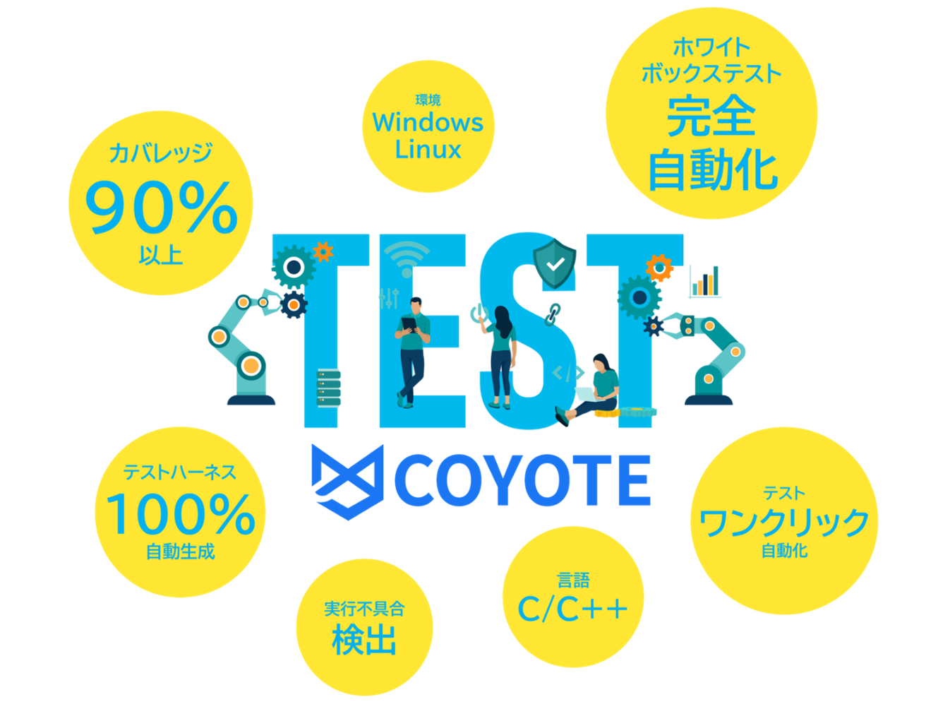 開発者支援を目的としたC/C++利用者向けソフトウエア検証ツールCOYOTE(コヨーテ)は、ホワイトボックステストを完全自動化、独自のソース解析技術と、シンボリックテスト環境を融合した革新的なツールです。