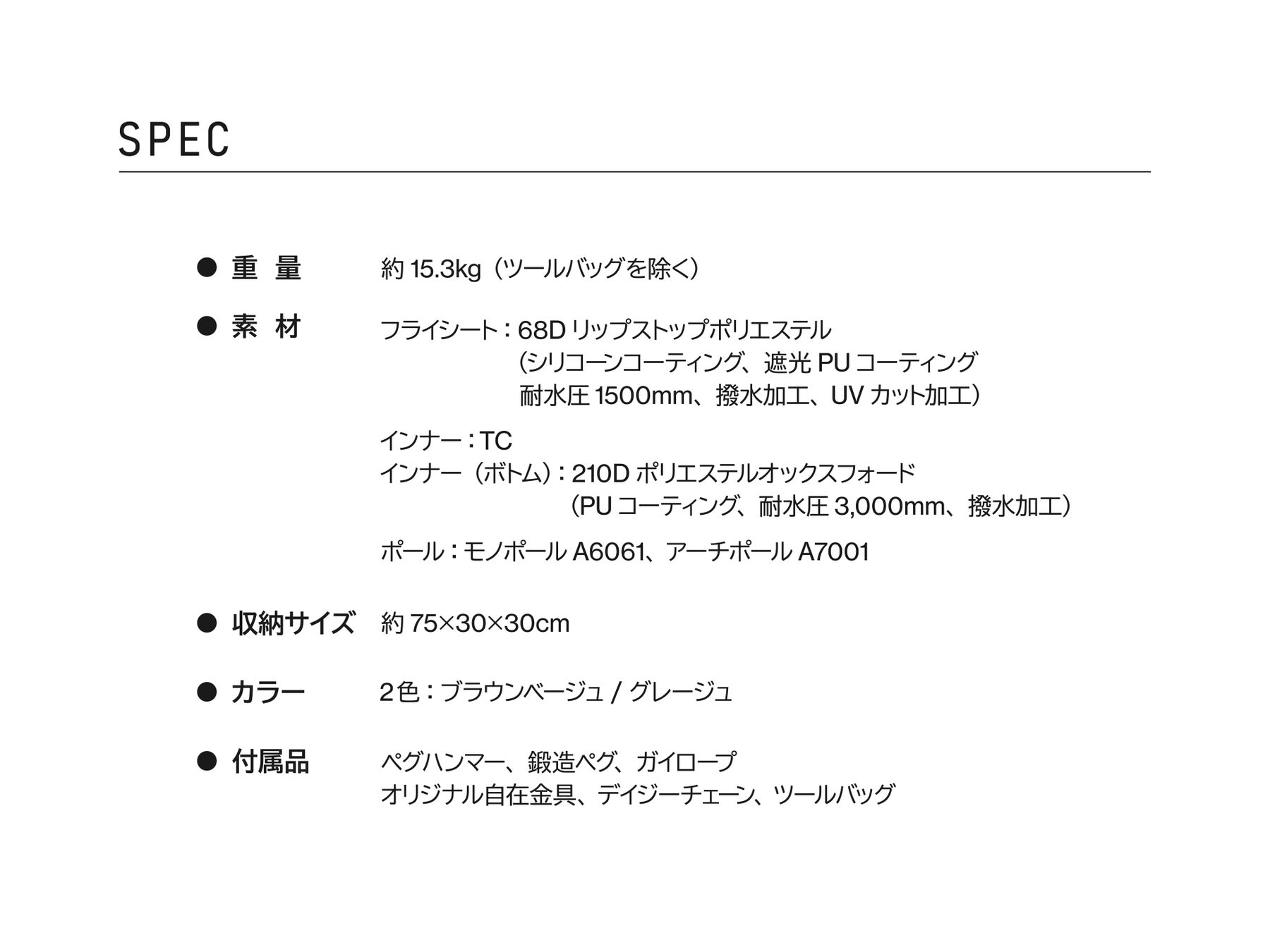 フライシート:68Dリップストップポリエステル(シリコーンコーティング、遮光PUコーティング、耐水圧3000mm、撥水加工、UVカット加工)