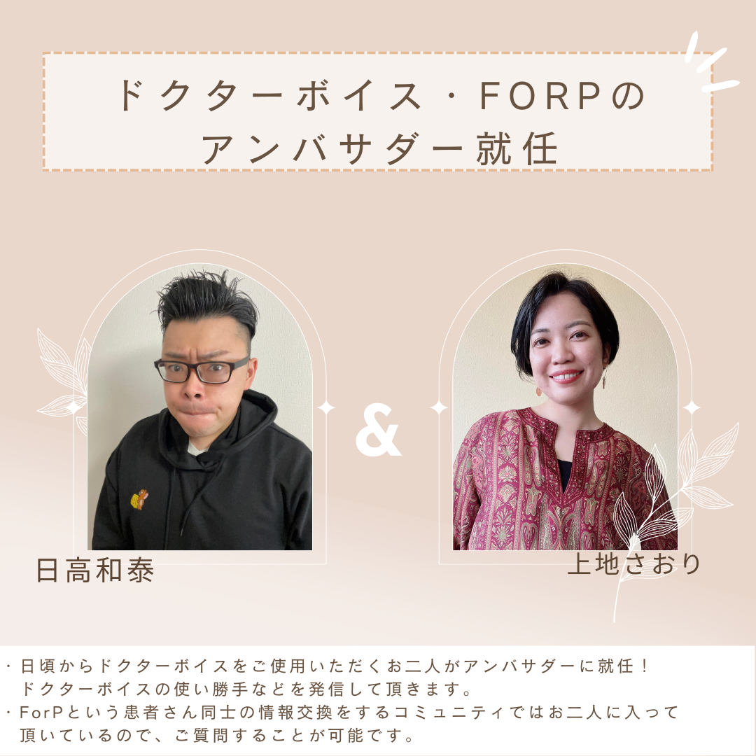 ドクターボイスとForPは、アンバサダーを広く募集しております。ご興味のある方は、こちらのフォームまでご連絡ください。