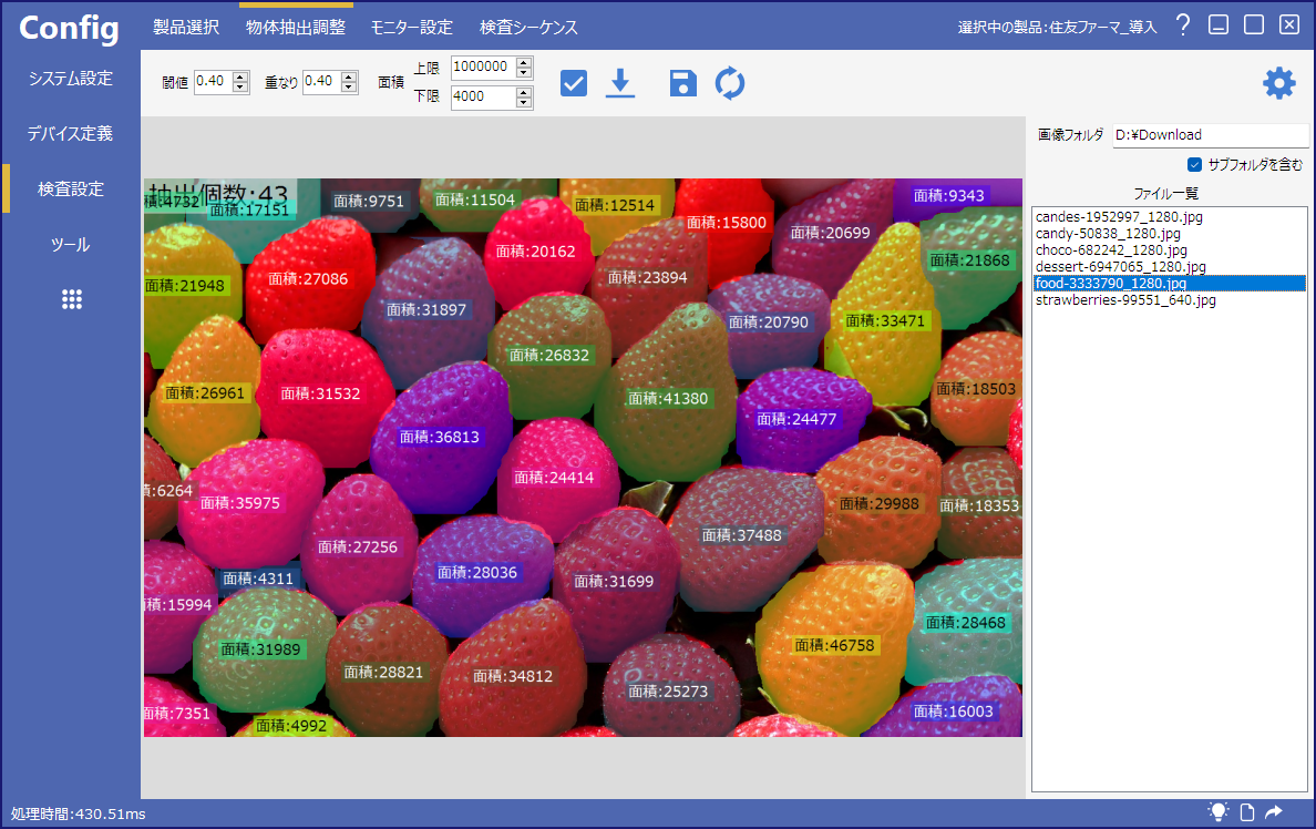 ◆個数やサイズのチェックのためのAI学習はすべて不要、学習用サンプル画像も必要無し。簡単な設定のみで、さまざまな対象製品の個数及びサイズの認識が可能に