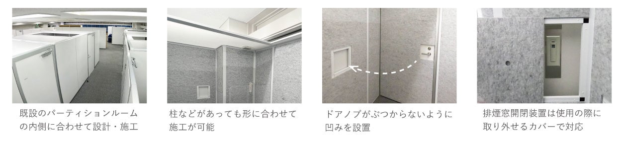 REMUTE(リミュート)は基本的に家具扱いで導入可能で、用途とビルの防災設備に合わせたブースを選択できます。