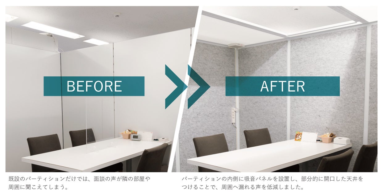 ハニカム構造による吸音パネル「テクセルSAINT」を使用。騒音対策2000例以上の実績を持つ優れた吸音パネルを使用したリミュートは、確かな吸音性能でオフィスに快適なワーキングスペースを設置できます。