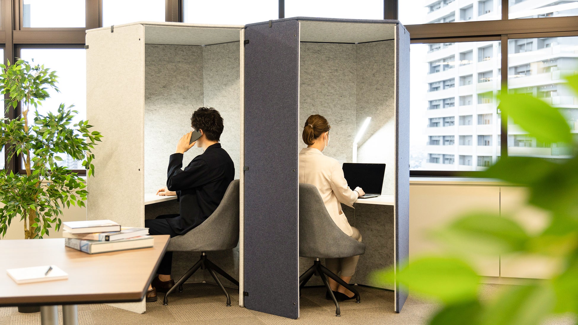 大きな会議室を1人で占領しているシーンや、気軽に電話ができるスペースがない、といった問題が解決できます。1人用、2人用、卓上タイプや間仕切りタイプなど豊富なラインナップで、活用シーンに合わせて選択可能です。