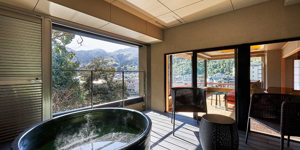 三朝温泉街を見晴らす3種の絶景スイート。天然温泉露天風呂にリニューアル