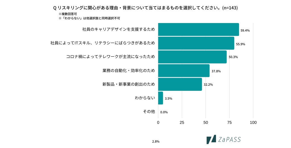 ZaPASS JAPAN 株式会社(本社:東京都千代田区、 代表取締役社長:足立愛樹)は、「リスキリング(学び直し)に関するアンケート」を実施し、人事総務担当者213名から回答を得ました。