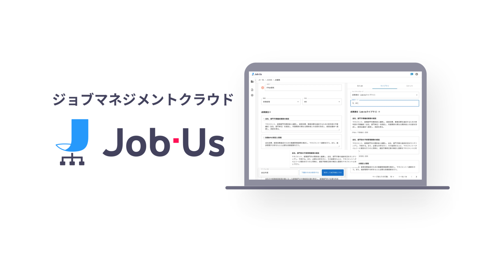 私たちは「日本の雇用をアップデートする」をミッションに掲げています。ジョブマネジメントクラウド「Job-US」で日本企業のジョブ型への変革を支援し、日本中のジョブ情報の整備を目指してまいります。