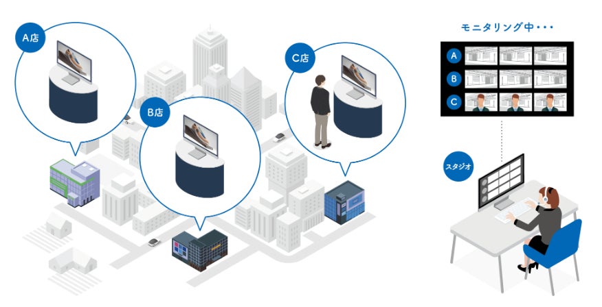 これまで「リアル販売員が立たないと成立しなかった」店頭の運営において「えんかくさん」を活用いただくことで、少数のオペレーターの人件費のみで多拠点の対応が可能になります。