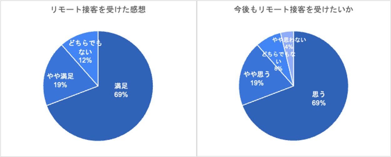 リモート接客「えんかくさん」での接客を受けたお客様の約9割が満足・約7割が購入