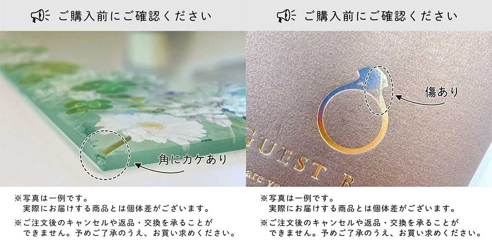 お客様に判断、納得してご購入いただけるように、傷や欠けなどをページ内で提示しています。