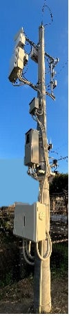 路側スマートポールは、路側に設置された電柱に、ローカル5Gアンテナおよび基地局、WiFiアクセスポイントに加え、3次元レーザレーダ(LiDAR)およびカメラ、遠隔型自動運転バスと共通の3次元地図、処理装置を搭載し、自動運転車両および遠隔監視拠点との情報送信、NTT東日本拠点でのデータ蓄積および解析を閉域接続で行うシステムを指します。