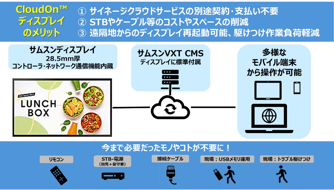 業界初 クラウド型サイネージサービスを追加機器・費用無しで利用できる、サムスン電子製43・55型 「CloudOn™ディスプレイ」 を発売