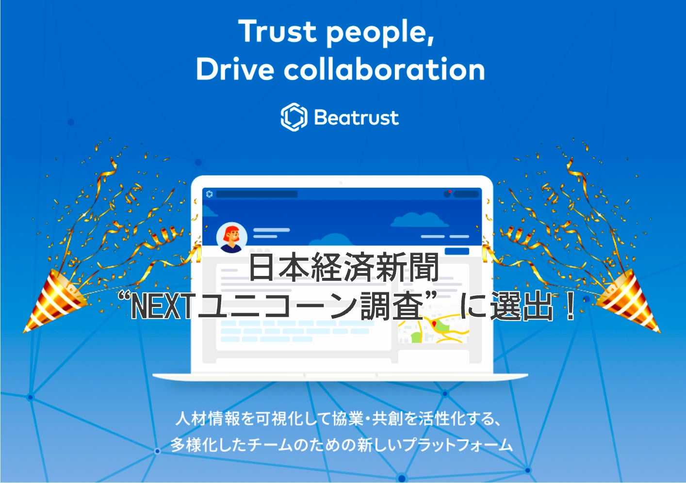 社員の自律的協業やイノベーション創出を促すタレントコラボレーション・プラットフォーム「Beatrust」を開発・提供するビートラスト株式会社(本社:東京都千代田区、代表取締役:原邦雄、以下ビートラスト)は、2022年12月6日(火)に日本経済新聞社より発表された「NEXTユニコーン調査」において選出されたことをお知らせいたします。