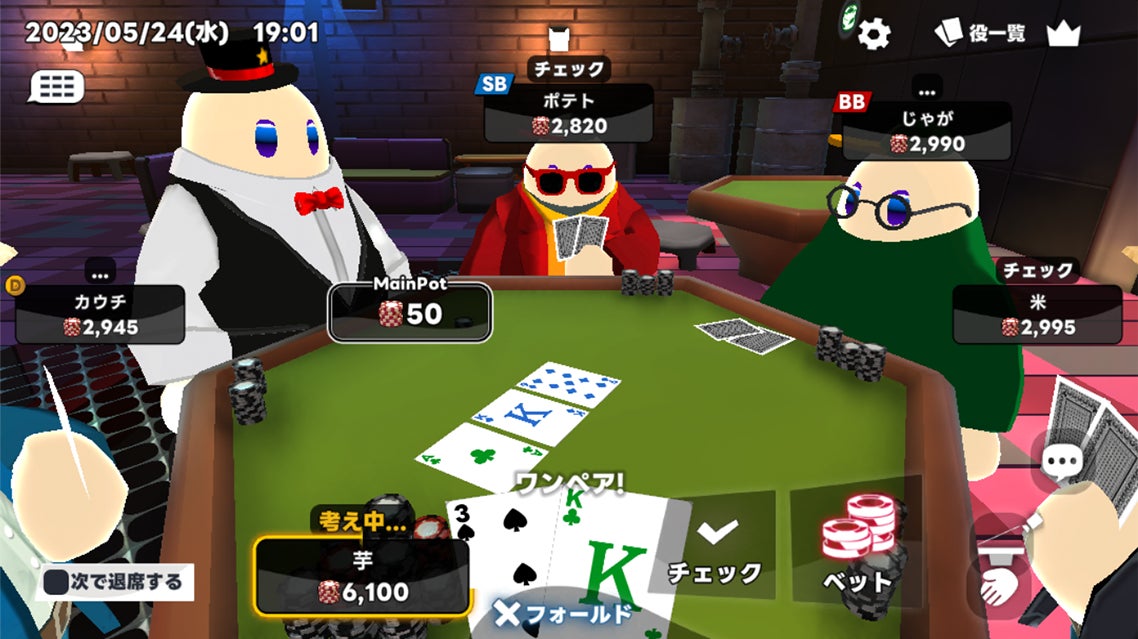 プレイヤーはアバターの姿で、全国の仲間たちとリアルタイムでポーカーなどを楽しむことができます。
