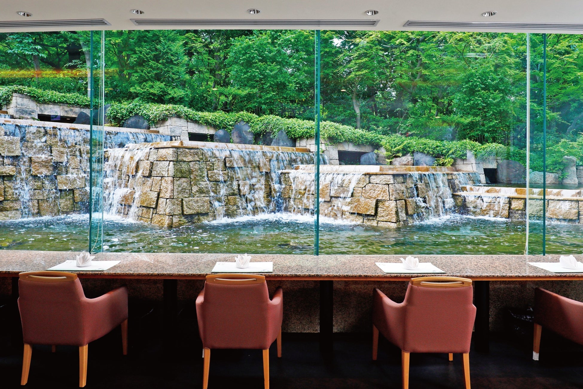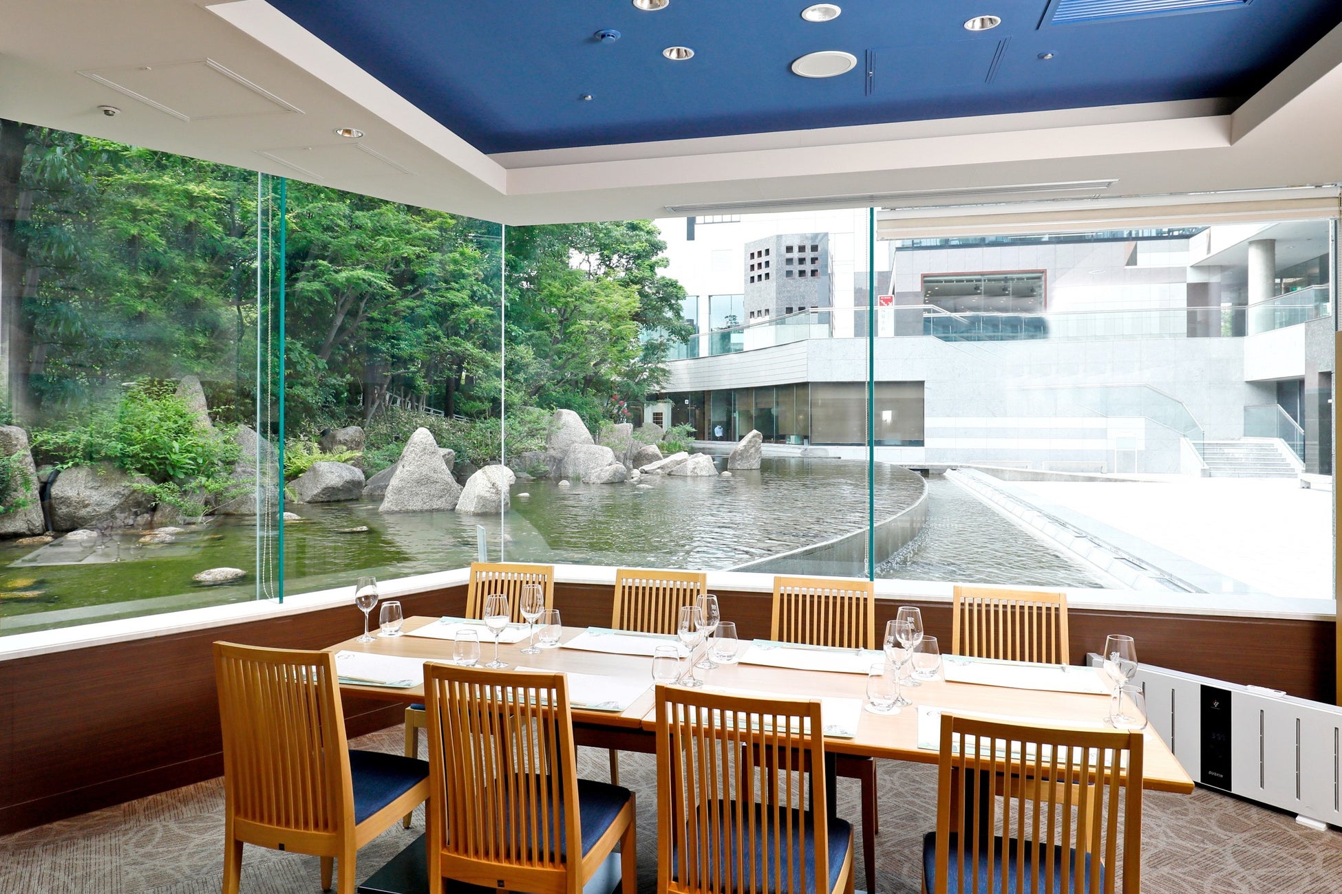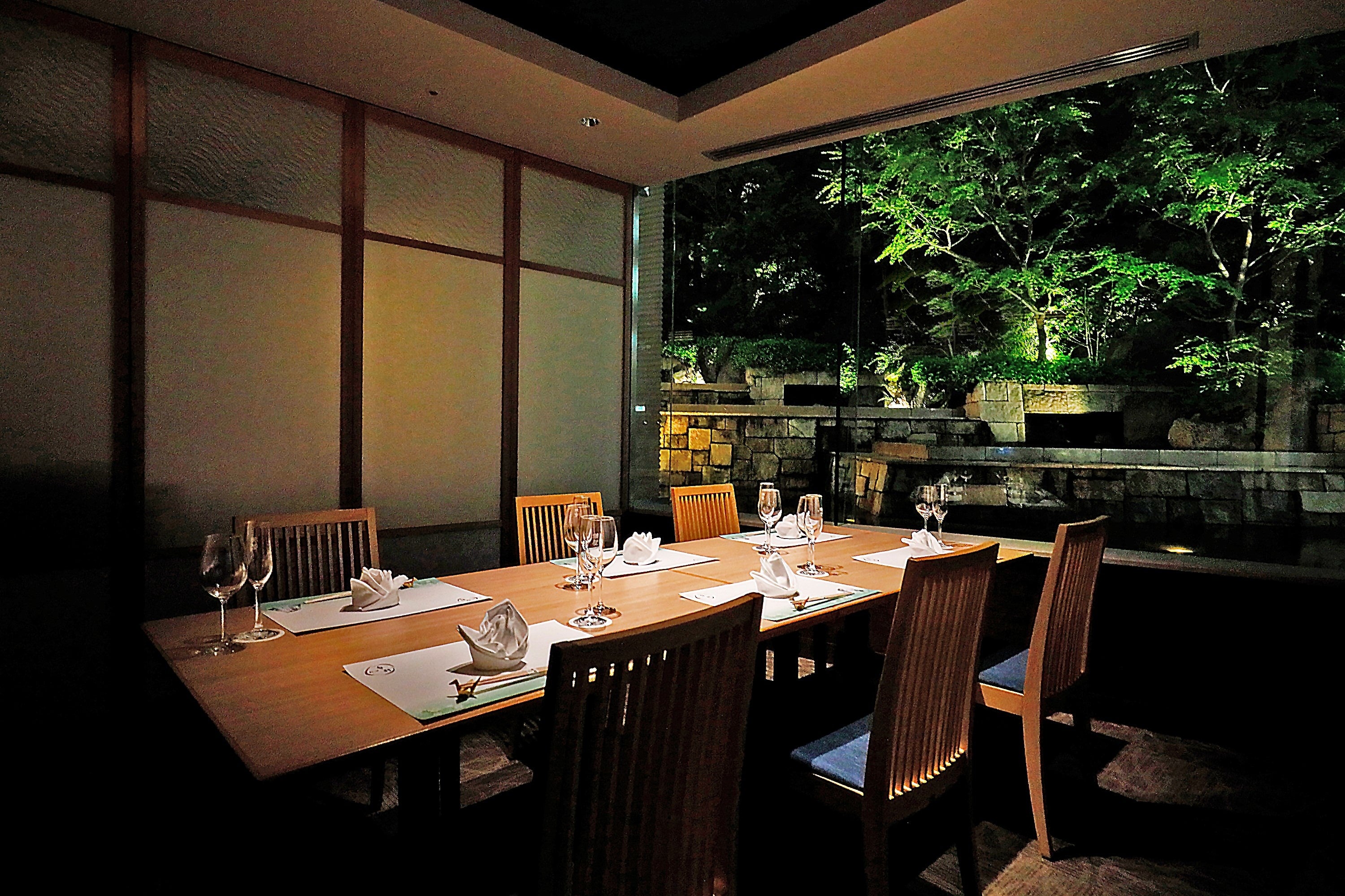 大阪駅より徒歩7分、梅田スカイビルの地下1階。季節の移ろいを感じさせる「中自然の森」に包まれた閑静な佇まい。