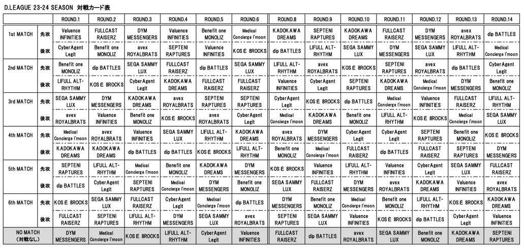 第一生命 D.LEAGUE 23-24 対戦カード表