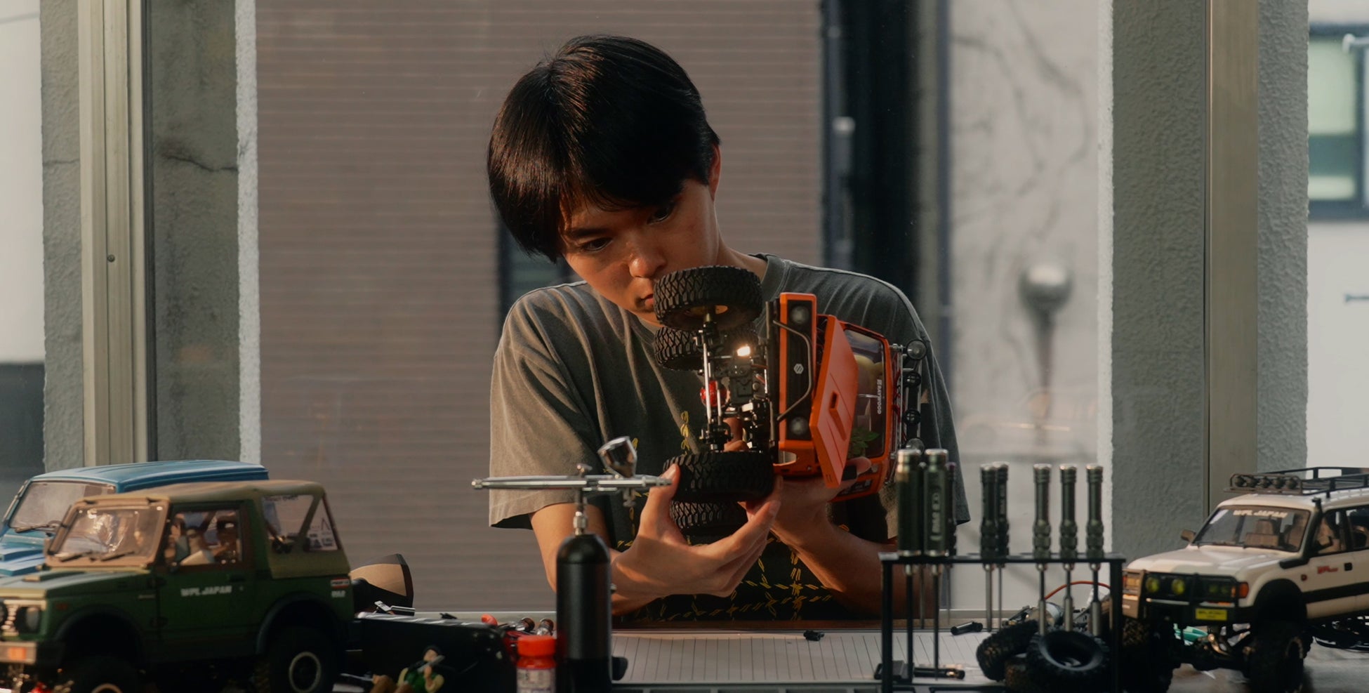 今回のジムニー (SJ10 1型) RTRは、外観だけでなく足まわりの再現度にもこだわり、リーフスプリングサスペンションを搭載。小さなスケールながら実車の構造を取り込み、RCカーとしての走りもリアルに楽しめる仕上がりです。また、幌やドアは取り外し可能で、オープン仕様・幌仕様をそれぞれ楽しめるギミックも搭載。ディスプレイとしても走行用としても、多彩なシーンに応じたスタイルを演出できます。