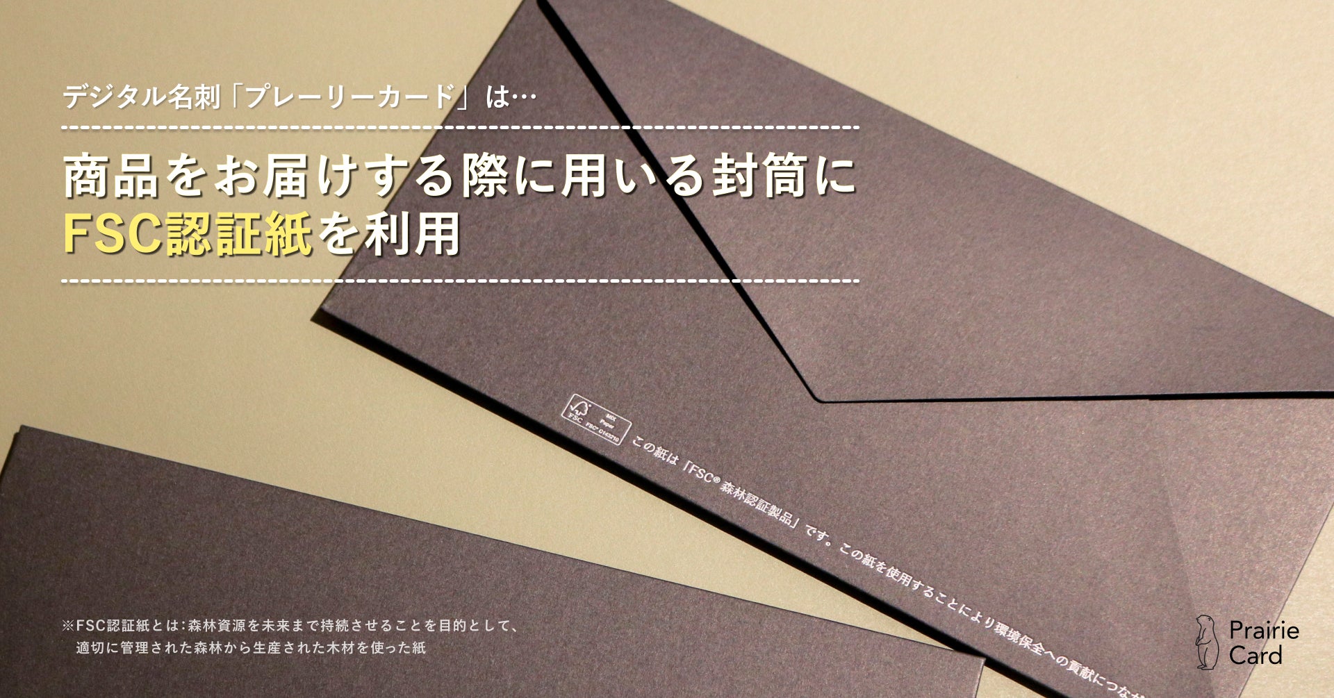 デジタル名刺「プレーリーカード」をお届けする際に用いる梱包資材にFSC認証紙を利用し、環境負荷を抑える取り組みを行っています。