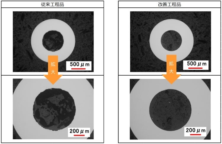 今回、当社では従来の加工条件を見直し、内径が小径であっても精度が良好となる新たな製造方法を確立しました。