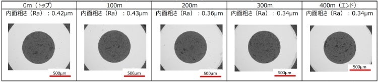 そして、さらなる内径の小径化へのユーザーニーズに対応するため、「内径φ0.75mm且つ面粗さRa0.5μm以下」の製品化を実現しました。