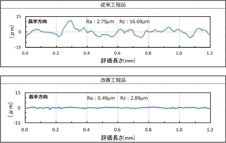 ①従来の製品と比べて内面粗さが大幅に向上しています(資料1)。