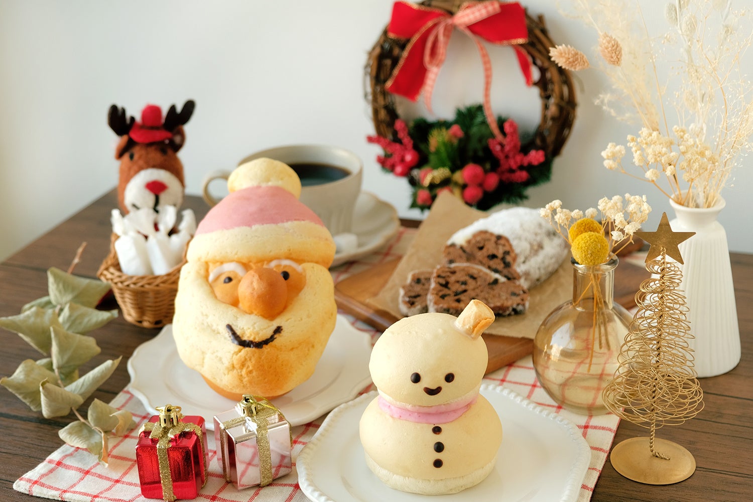 また、「クックハウス」では12月1日にはクリスマスをパンで楽しめる「スノーマン」や「コルネ」をはじめ、毎年人気のシュトレーンに今年はチョコをトッピングした「チョコシュトーレン」、寒い季節にあたためて美味しい「ピザパン」「デミハンバーグパン」の計5種類の新商品を販売します。さらに、12月22日~25日には期間限定で赤い帽子と白いおひげのかわいい「サンタクロースパン」も販売します。