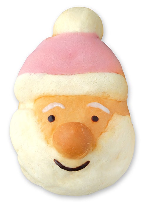 サンタクロースパンは、練乳入りビス生地で作った赤い帽子と白いおひげ。中にはたっぷりのカスタードクリームが入っています。