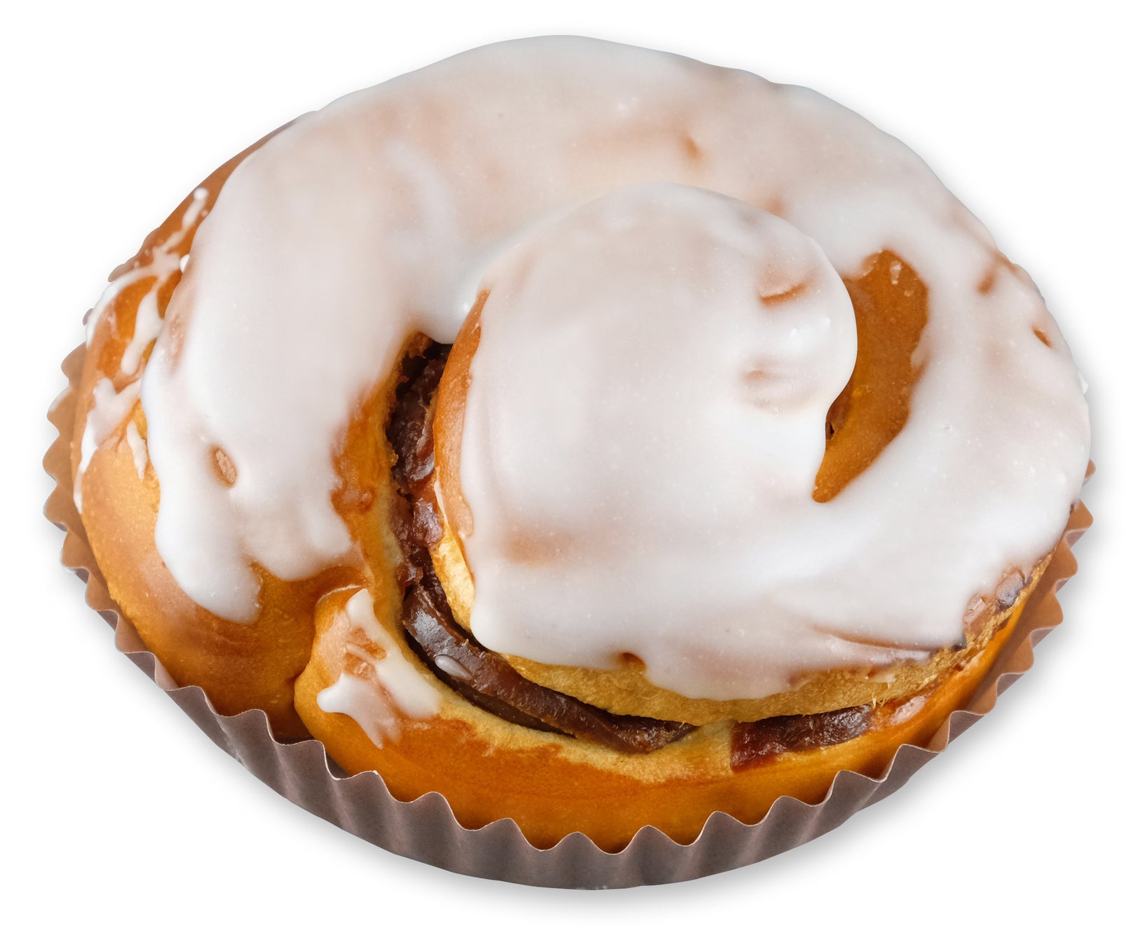香り豊かなシナモンペーストをパン生地で巻き焼き上げ、フォンダンをトッピングしました。