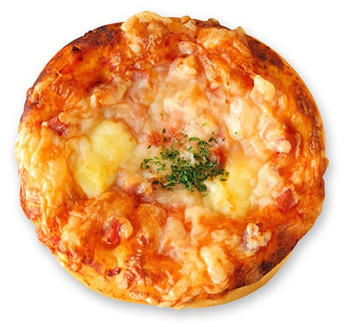 北海道小麦を使用したソフトフランスパンに、ピザソース・ベーコン・チーズソースをトッピングし焼き上げました。トーストして温めるとさらにおいしくお召し上がりいただけます。