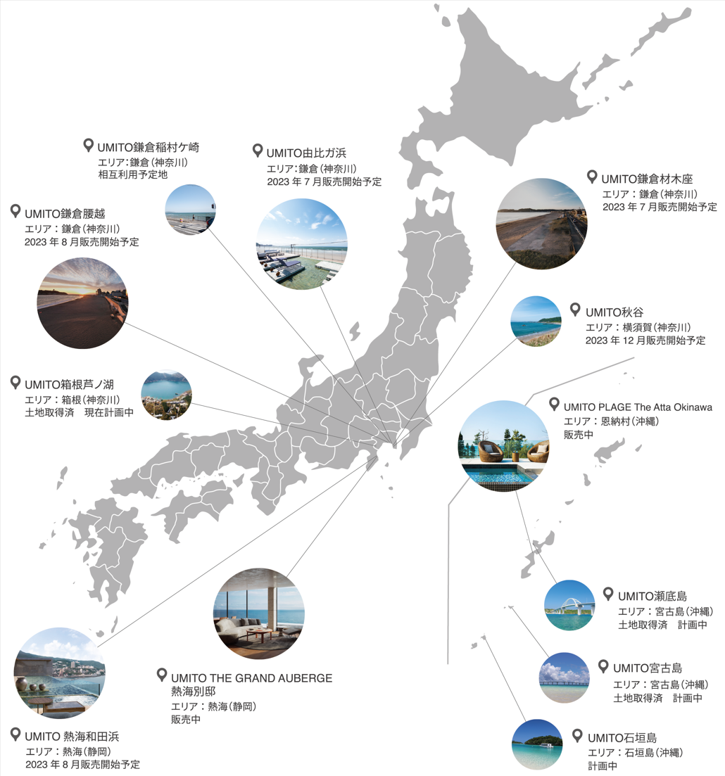 UMITOシリーズをご購入のお客様は、鎌倉の他のUMITOシリーズや沖縄のUMITO PLAGE The Atta Okinawaも宿泊可能です。また、熱海和田浜にも計画進行中で、今後も宿泊可能な施設をどんどん増やしていきます。
